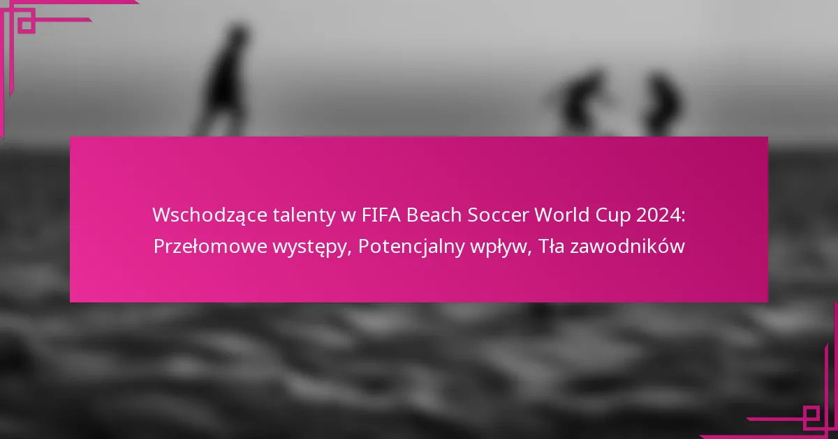 Wschodzące talenty w Mistrzostwach Świata w Piłce Plażowej FIFA 2024 mają potencjał, aby znacząco wpłynąć na wyniki swoich drużyn oraz ogólną dynamikę turnieju. Ich unikalne umiejętności i historie mogą wzbogacić strategie drużynowe i przyczynić się do rozwoju piłki plażowej na skalę globalną.