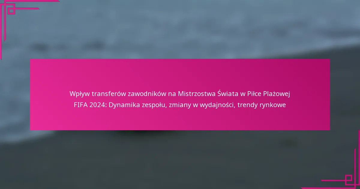 Jakie zmiany w wydajności są związane z transferami zawodników w Mistrzostwach Świata w Beach Soccer FIFA 2024?