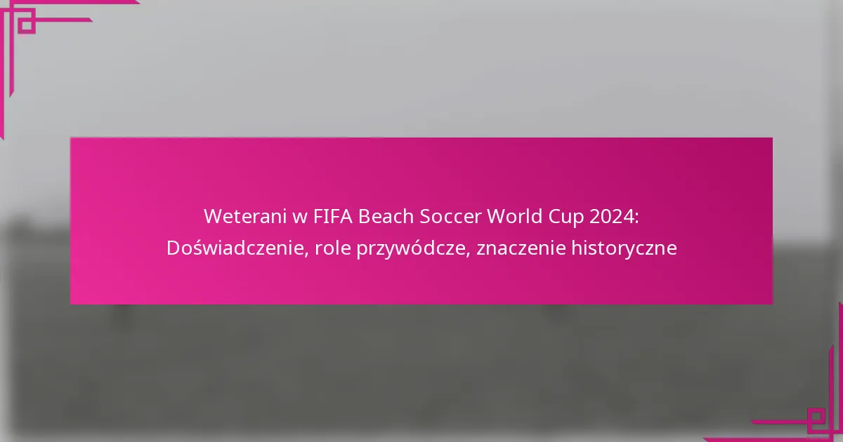 Weterani w FIFA Beach Soccer World Cup pełnią kluczowe role przywódcze, które znacząco wpływają na ich zespoły. Ich doświadczenie pozwala im kierować strategiami, mentorować młodszych zawodników i utrzymywać morale zespołu, co jest niezbędne do osiągnięcia sukcesu w sytuacjach pod dużą presją.